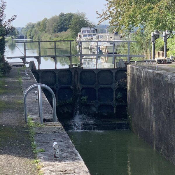 Der Rhein-Rhone-Kanal ist eine entspannte Sache. Georgette und ich können uns gut vorstellen, auch einmal mit einem Hausboot herumzugondeln. Die Velos hätten wir ja, wie beim Büssli, auch immer dabei.